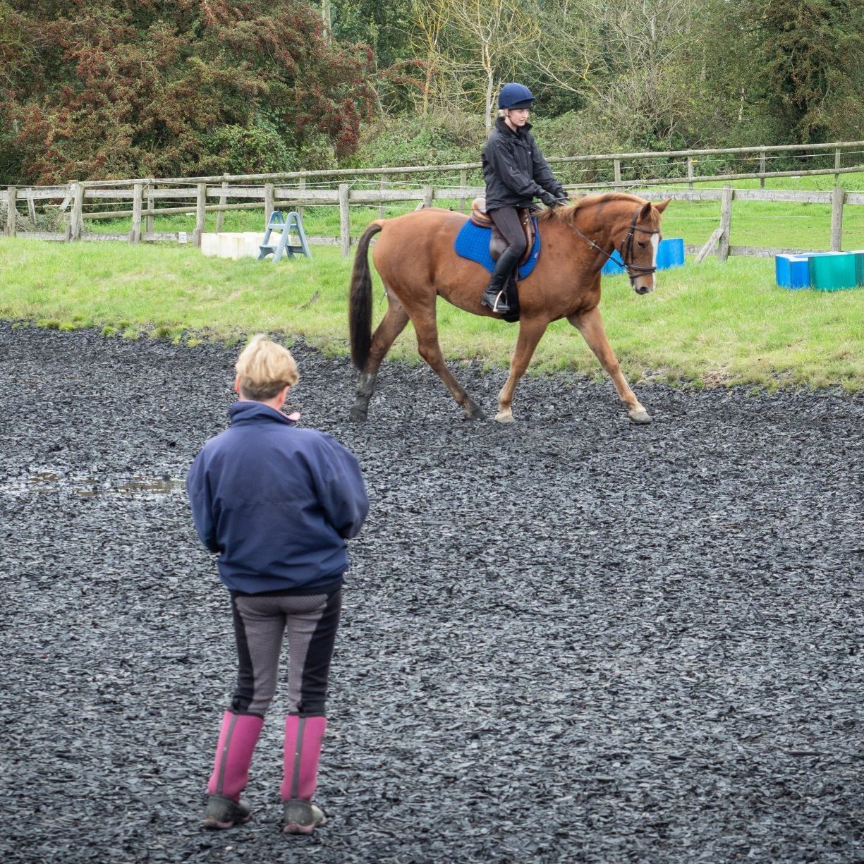 Small group lessons are run all year round on both our outdoor rubber arena and on grass. You will be matched with a horse or pony that is suitable for your size, weight and ability. These lessons are either 30 minutes or 1 hour long with a duty instructor. We run in all weathers unless it is deemed unsafe to ride by the yard owner.